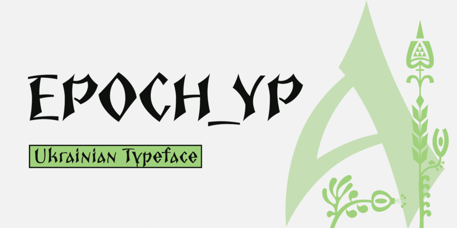 Epoch is a display typeface with dynamic forms, inspired by the book graphics of artist Ivan Pleskanko and Ukrainian type traditions of the 20th century. The typeface combines decorative expressiveness with functionality, making it suitable for posters, covers, labels, and packaging, while emphasizing the Ukrainian cultural identity of the design.